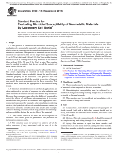 ASTM G160-12(2019) - Standard Practice for Evaluating Microbial Susceptibility of Nonmetallic Materials By Laboratory Soil Burial