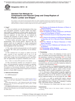ASTM D6112-23 is a comprehensive international standard published by ASTM International that establishes test methods for evaluating the compressive and flexural creep and creep-rupture properties of plastic lumber and shapes. This standard is vital for predicting the long-term mechanical performance and dimensional stability of products made from plastic lumber, which are increasingly used in construction and outdoor applications due to durability and sustainability. ASTM D6112-23 covers both recycled and virgin resin-based plastic products, focusing on their real, "as-manufactured" forms rather than raw material samples.