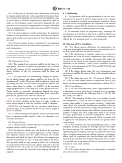 - Measurement and Reporting: The standard requires precise measurement of deformation and environmental conditions during tests. Results include data for creep strain, creep modulus, and time-to-rupture analysis, which are critical for comparative analysis and engineering design.