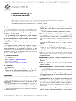 • Other ASTM Composite Standards - D3878-23 terminology is referenced by many ASTM standards on composite testing, material qualification, and fabrication procedures.