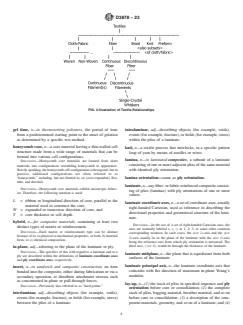 • Measurement and Testing Terms: Specifies definitions for properties such as fiber content, matrix content, denier, filament count, ply orientation, and coordinate axes.