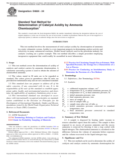 Keywords: ASTM D4824-24, ammonia chemisorption, catalyst acidity, catalyst carrier, volumetric measurement, catalyst testing standard, catalyst manufacturing control, petrochemical catalysts, catalyst evaluation, industrial catalysis quality assurance.