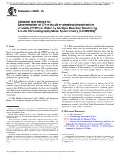 ASTM D8024-23 - Standard Test Method for Determination of (Tri-n-butyl)-n-tetradecylphosphonium chloride (TTPC) in Water by Multiple Reaction Monitoring Liquid Chromatography/Mass Spectrometry (LC/MS/MS)