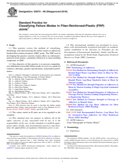 ASTM D5573-99(2019) is a standard practice developed by ASTM International for the classification of failure modes in adhesively bonded fiber-reinforced plastic (FRP) joints. This standard provides a comprehensive and straightforward method to identify and characterize how and where bonded FRP joints fail, specifically focusing on visual assessment of failure surfaces without the need for magnification or microscopes. It is particularly relevant for glass fiber-reinforced thermoset polyester resin systems, commonly known as sheet-molding compounds (SMC).