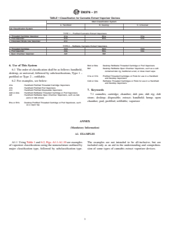 1.3 This classification shall provide examples of each type of cannabis/hemp extract vaporizers. Examples and pictorials shown in the Annexes and Appendixes or described in this classification are not intended to be all-inclusive and are included only as an aid in understanding and comprehension of the classification system.