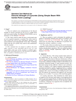 • Flexural Strength Measurement: The standard defines procedures for assessing the modulus of rupture by applying a concentrated load at the center point of a concrete beam.