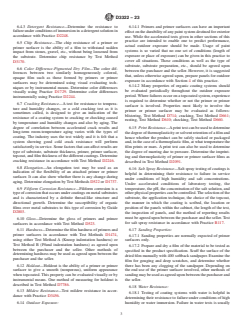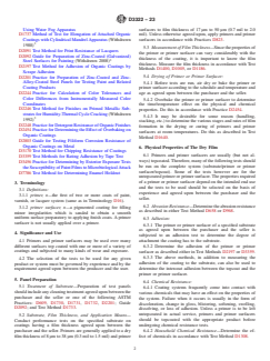 SIGNIFICANCE AND USE 4.1 Primers and primer surfacers may be used over many different surfaces top coated with one or more of a variety of coatings and subjected to many kinds of wear and exposure. 4.2 The selection of the tests to be used for any given product or system must be governed by experience and by the requirement agreed upon between the producer and the user. SCOPE 1.1 This practice covers the selection and use of procedures for testing primers and primer surfacers. 1.2 The values stated in SI units are to be regarded as the standard. The values given in parentheses are for information only. 1.3 This standard does not purport to address all of the safety concerns, if any, associated with its use. It is the responsibility of the user of this standard to establish appropriate safety, health, and environmental practices and determine the applicability of regulatory limitations prior to use. 1.4 This international standard was developed in accordance with internationally recognized principles on standardization established in the Decision on Principles for the Development of International Standards, Guides and Recommendations issued by the World Trade Organization Technical Barriers to Trade (TBT) Committee.