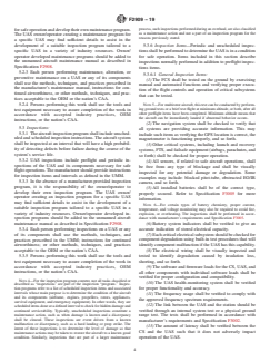 SCOPE 1.1 This specification establishes the standard practice for the maintenance and continued airworthiness of a lightweight unmanned aircraft system (UAS). 1.2 At a minimum, a UAS is defined as a system composed of the unmanned aircraft and all required subsystems, control station, all required crew members, command and control (C2) links, and any required launch and recovery equipment. 1.3 The intended use for this specification is for civil aviation authority (CAA), self-, or third-party determinations of continued airworthiness for UAS. This specification provides the core requirements for continued airworthiness of lightweight UAS or for certain CAA operational approvals using risk-based categories, or both. Additional requirements are envisioned to address the requirements for expanded operations and characteristics not addressed by this specification. 1.4 This specification is intended to support aircraft developed in accordance with Specifications F2910, F3002, F3005, and F3298. 1.5 This specification is intended to support UAS operations. It is assumed that the risk of UAS will vary based on concept of operations, environment, and other variables. The fact that there are no human beings onboard the UAS may reduce or eliminate some hazards and risks. 1.6 This standard does not purport to address all of the safety concerns, if any, associated with its use. It is the responsibility of the user of this standard to establish appropriate safety, health, and environmental practices and determine the applicability of regulatory limitations prior to use. 1.7 This international standard was developed in accordance with internationally recognized principles on standardization established in the Decision on Principles for the Development of International Standards, Guides and Recommendations issued by the World Trade Organization Technical Barriers to Trade (TBT) Committee.