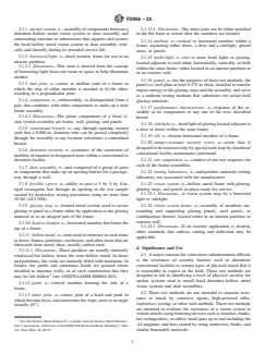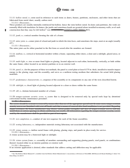 SIGNIFICANCE AND USE 4.1 A major concern for corrections administration officials is the resistance of security barriers used in detention/correctional facilities to certain types of physical attack that it is reasonable to expect in the field. These test methods are designed to aid in identifying a level of physical security for anchor systems used to install fixed detention hollow metal vision systems and door assemblies. 4.2 These test methods are not intended to measure resistance to attack by corrosive agents, high-powered rifles, explosives, sawing, or other such methods. These test methods are intended to evaluate the resistance of a vision system to violent attacks using battering devices such as benches, bunks, fire extinguishers, or tables; hand guns up to and including the .44 magnum; and fires started by using mattresses, books, and similar flammable materials. 4.3 The primary purpose or result of this standard is to provide detailed test methods that approximate the levels of abuse to which it is possible that vision system and door assembly anchor systems become subjected in the field. The desired result of its use is to give ensurance of protection to the public, to prison administrative personnel, and to the inmates themselves in the event of such attack. Note 1: It is recommended that detention/correctional facility administration provide adequate training, supervision, and preventive maintenance programs to enable hollow metal vision systems to function as intended throughout the expected service life. SCOPE 1.1 These test methods cover anchor systems used for the installation of fixed detention hollow metal vision systems and door assemblies of various materials and types of construction. These anchor systems are used to install fixed hollow metal vision systems and door assemblies in wall openings in detention and correctional institutions designed to incarcerate inmates. 1.2 Anchor systems individual components investigated under these test methods include detention security hollow metal frames, frame anchoring, security glazing, panels, and removable glazing stops. 1.3 These test methods are designed to test the capability of anchor systems used to install a fixed detention hollow metal vision system or door assembly to prevent, delay, and frustrate escape; to limit or control access to unauthorized or secured areas; and prevent passage of contraband. 1.4 These test methods apply primarily to anchor systems used to install detention hollow metal vision systems or door assemblies between secure areas generally found inside a detention/correctional facility such as: day rooms, control rooms, cells, and sally ports. These test methods are applicable to anchor systems used to install vision systems and door assemblies other than hollow metal, provided testing and reporting procedures are followed. 1.5 The values stated in inch-pound units are to be regarded as the standard. The values given in parentheses are for information only. 1.6 This standard does not purport to address all of the safety concerns, if any, associated with its use. It is the responsibility of the user of this standard to establish appropriate safety, health, and environmental practices and determine the applicability of regulatory limitations prior to use. 1.7 This international standard was developed in accordance with internationally recognized principles on standardization established in the Decision on Principles for the Development of International Standards, Guides and Recommendations issued by the World Trade Organization Technical Barriers to Trade (TBT) Committee.