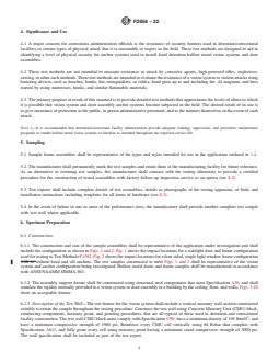 4.3 The primary purpose or result of this standard is to provide detailed test methods that approximate the levels of abuse to which it is possible that vision system and door assembly anchor systems become subjected in the field. The desired result of its use is to give ensurance of protection to the public, to prison administrative personnel, and to the inmates themselves in the event of such attack.