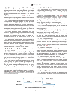 ASTM E2986-22 is a guide published by ASTM International. Its full title is "Standard Guide for Evaluation of Environmental Aspects of Sustainability of Manufacturing Processes". This standard covers: SIGNIFICANCE AND USE 4.1 This guide provides a reference to the manufacturing community for the evaluation of environmental sustainability aspects of manufacturing processes. This guide is intended to improve efficiencies and consistencies of informal methods by providing procedures for consistent evaluations of manufacturing processes. 4.2 This guide describes a procedure to identify parameters and models for evaluating sustainability metrics for a particular process. Users of this guide will benefit from insight into the sustainability implications of selected processes as well as the contributing factors. SCOPE 1.1 This guide provides guidance to develop manufacturer-specific procedures for evaluating the environmental sustainability performance of manufacturing processes. This guide introduces decision support methods that can be used to improve sustainability performance. 1.2 The scope of this guide is constrained by the manufacturing phase of the life cycle. The guide addresses specifics related to the processes and procedures within this phase. 1.3 This guide will allow manufacturers to make effective evaluations during plant and enterprise-wide decision-making within the manufacturing phase. 1.4 This guide focuses on environmental sustainability impacts, though social and economic impacts are not explicitly excluded. 1.5 This guide addresses: 1.5.1 Setting boundaries for the evaluation of environmental sustainability of a process or processes, 1.5.2 Identifying the process and equipment-related parameters necessary for environmental sustainability-driven process evaluation, 1.5.3 Creating process models using these parameters, 1.5.4 Utilizing process models to support consistent evaluations and sustainability-driven decision-making in a manufacturing enterprise. Note 1: See ULE 880 for additional guidance at enterprise-level decision-making. 1.6 This guide may be used to complement other standards that address sustainability and the product life cycle. This guide most closely relates to the inventory component as discussed in the ISO 14040 series (ISO 14040, ISO 14044) standards, efficiency as discussed in the ISO 50000 series (ISO 50001) standards, and resource management as discussed in the ISO 55000 series (ISO 55001) standards. 1.7 The values stated in SI units are to be regarded as standard. No other units of measurement are included in this standard. 1.8 This standard does not purport to address all of the safety concerns, if any, associated with its use. It is the responsibility of the user of this standard to establish appropriate safety, health, and environmental practices and determine the applicability of regulatory limitations prior to use. 1.9 This international standard was developed in accordance with internationally recognized principles on standardization established in the Decision on Principles for the Development of International Standards, Guides and Recommendations issued by the World Trade Organization Technical Barriers to Trade (TBT) Committee.