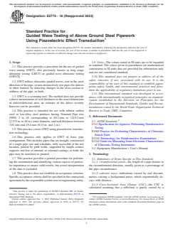 ASTM E2775-16(2023) - Standard Practice for Guided Wave Testing of Above Ground Steel Pipework Using Piezoelectric Effect Transduction