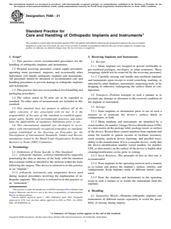 (Practice)Standard Practice for Care and Handling of Orthopedic Implants and Instruments