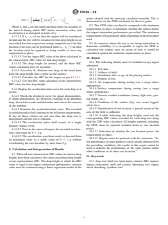 - Reporting and Units: Test results are to be reported in SI units, with conversions to inch-pound for reference only. Reports must detail test conditions, drop heights, HIC values, CFH, and a statement addressing the influence of environment and location on results.