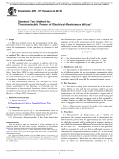 ASTM B77-07(2013) - Standard Test Method for Thermoelectric Power of Electrical-Resistance Alloys - Effective Date