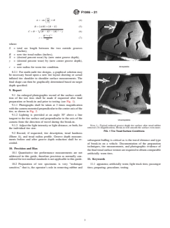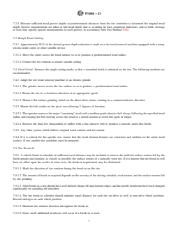 5.2 The amount of tread rubber to be removed (groove depth reduction) and the final surface texture are selected according to the requirements of a particular testing program.
