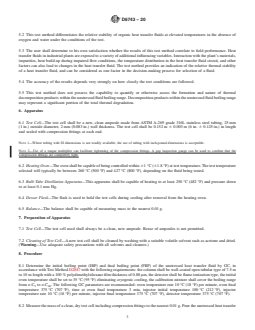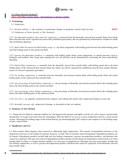 5.5 This test method does not possess the capability to quantify or otherwise assess the formation and nature of thermal decomposition products within the unstressed fluid boiling range. Decomposition products within the unstressed fluid boiling range may ...