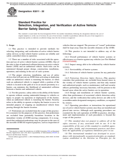 ASTM E3211-22: Standard Practice for Selection, Integration, and Verification of Active Vehicle Barrier Safety Devices provides a comprehensive framework for ensuring the safe and effective operation of active vehicle barrier systems (AVBS). Developed by ASTM International, this standard guides stakeholders-including owners, designers, installers, integrators, and equipment providers-in minimizing risks associated with the deployment of active vehicle barriers. The focus is on the correct selection, integration, and verification of safety devices to prevent unintended collisions between authorized vehicles and vehicle barriers, which could otherwise result in significant property damage or personal injury.
