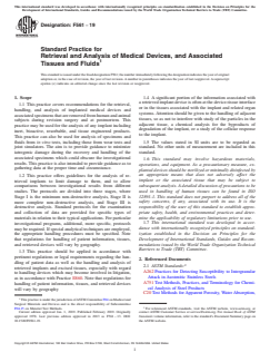 ASTM F561-19 - Standard Practice for Retrieval and Analysis of Medical Devices, and Associated Tissues and Fluids
