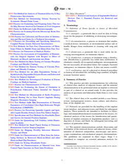 ASTM F561-19 - Standard Practice for Retrieval and Analysis of Medical Devices, and Associated Tissues and Fluids, provides comprehensive guidelines for the retrieval, handling, and analysis of explanted medical devices along with associated tissues and fluids. Issued by ASTM International, this standard is essential for professionals involved in device retrieval and analysis following revision surgery, postmortem studies, or in vitro testing. The focus is on minimizing damage during recovery and handling, thus preserving the integrity of scientific investigations into device performance, safety, and biological interactions.