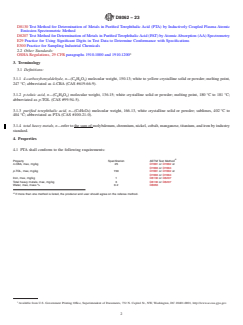 - D8130, D8207: Test methods for determining the concentration of metals in PTA using plasma atomic emission spectrometry and atomic absorption spectrometry.