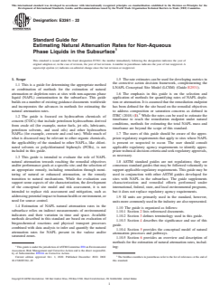 ASTM E3361-22 - Standard Guide for Estimating Natural Attenuation Rates for Non-Aqueous Phase Liquids in the Subsurface