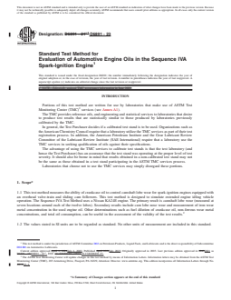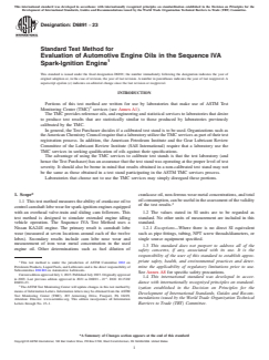 Relevant keywords: ASTM D6891-23, engine oil wear test, camshaft lobe wear, Sequence IVA, spark-ignition engine, lubricant evaluation, API 1509, engine oil standard, automotive lubricants testing, overhead valve-train, sliding cam followers, oil specification compliance.