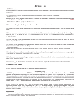 SIGNIFICANCE AND USE 5.1 This test method was developed to evaluate automotive lubricant’s effect on controlling cam lobe wear for overhead valve-train equipped engines with sliding cam followers. Note 1: This test method may be used for engine oil specifications, such as Specification D4485, API 1509, SAE J183, and ILSC GF 3. SCOPE 1.1 This test method measures the ability of crankcase oil to control camshaft lobe wear for spark-ignition engines equipped with an overhead valve-train and sliding cam followers. This test method is designed to simulate extended engine idling vehicle operation. The Sequence IVA Test Method uses a Nissan KA24E engine. The primary result is camshaft lobe wear (measured at seven locations around each of the twelve lobes). Secondary results include cam lobe nose wear and measurement of iron wear metal concentration in the used engine oil. Other determinations such as fuel dilution of crankcase oil, non-ferrous wear metal concentrations, and total oil consumption, can be useful in the assessment of the validity of the test results.2 1.2 The values stated in SI units are to be regarded as standard. No other units of measurement are included in this standard. 1.2.1 Exceptions—Where there is no direct SI equivalent such as pipe fittings, tubing, NPT screw threads/diameters, or single source equipment specified. 1.3 This standard does not purport to address all of the safety concerns, if any, associated with its use. It is the responsibility of the user of this standard to establish appropriate safety, health, and environmental practices and determine the applicability of regulatory limitations prior to use. See Annex A8 for specific safety precautions. 1.4 This international standard was developed in accordance with internationally recognized principles on standardization established in the Decision on Principles for the Development of International Standards, Guides and Recommendations issued by the World Trade Organization Technical Barriers to Trade (TBT) Committee.