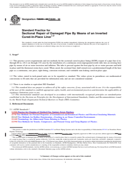 REDLINE ASTM F2599-22 - Standard Practice for Sectional Repair of Damaged Pipe By Means of an Inverted Cured-In-Place Liner<rangeref></rangeref >