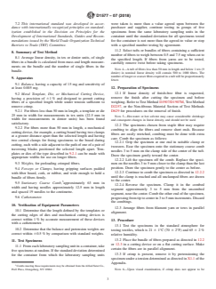 ASTM D1577-07(2018): Standard Test Methods for Linear Density of Textile Fibers defines standardized procedures for determining the mass per unit length, also known as linear density, of textile fibers and filaments. Developed by ASTM International, this standard is significant for textile manufacturers, suppliers, and laboratories that require accurate, reproducible measurements of fiber linear density for quality control and commercial transactions. The standard covers multiple test options, including direct weighing of fiber bundles or single fibers and the use of a vibroscope for both crimped and uncrimped fibers.
