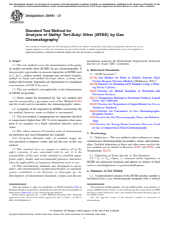 ASTM D5441-21 - Standard Test Method for Analysis of Methyl Tert-Butyl Ether (MTBE) by Gas Chromatography