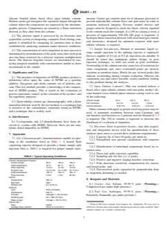 This standard outlines procedures utilizing open tubular column gas chromatography with a flame ionization detector (FID), a sensitive and widely adopted technique suitable for detecting common contaminants in MTBE. The method enables the detection of impurities at concentrations as low as 0.02% by mass.