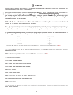 9.7 Continuously monitor the decreasing pipe-ring inside vertical diameter versus time or inspect the loaded specimen at least at