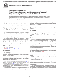 ASTM D2074-07(2019) - Standard Test Methods for Total, Primary, Secondary, and Tertiary Amine Values of Fatty Amines by Alternative Indicator Method