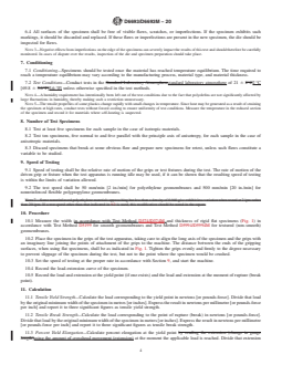- Testing Conditions: Specifies controlled test environments regarding temperature and machine speed, emphasizing precise specimen preparation for repeatability.