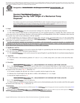 ASTM D6536/D6536M-18 - Standard Practice for Measuring the Dip Tube Length of a Mechanical Pump Dispenser