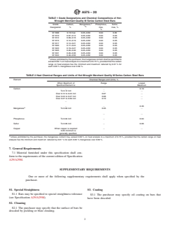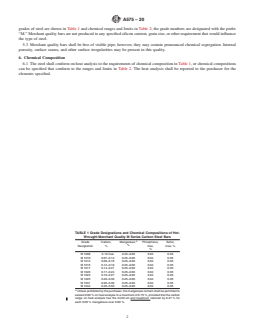 grades of steel are shown in Table 1 and chemical ranges and limits in Table 2; the grade numbers are designated with the prefix
