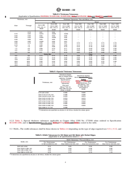 tolerances prescribed in Table 18 for the product specification indicated. The tolerances for lots of less than five plates or sheets