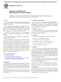 1.1 This test method covers the determination of hydroquinone in the range from 1 to 20 ppm in refined, commercially available, vinyl acetate.