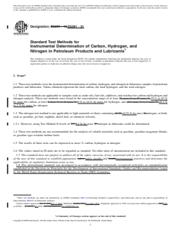 REDLINE ASTM D5291-21 - Standard Test Methods for Instrumental Determination of Carbon, Hydrogen, and Nitrogen in Petroleum Products and Lubricants