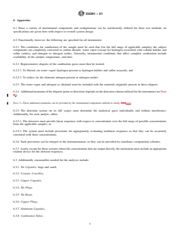 - Instrumentation: Multiple instrumental methods are permitted, requiring complete combustion of the sample and quantitative detection of resultant gases. Procedures account for automation or manual control, and several calibration standards are referenced.