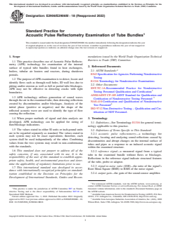 • Procedure Requirements: Inspection requires access to one open end of each tube. The standard covers signal analysis, flaw sizing methods, and reporting requirements for examined tube bundles.