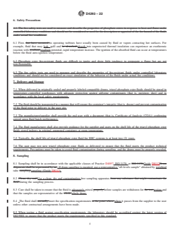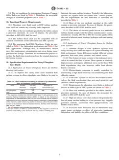 ABSTRACT This specification covers the requirements for phosphate ester based fire resistant fluids for use in turbine lubrication. Only unused fluid is defined before it is installed in the turbine while fluids used in electrohydraulic control (EHC) systems is not. The use of this type of fluid is restricted to turbine systems that have been designed or modified to accommodate phosphate ester lubricants. Fire tests shall be performed which measure and describe the properties of the phosphate esters in response to heat and flame under controlled laboratory conditions and should not be considered or used for the description or appraisal of the fire hazard of the fluids under actual fire conditions. SCOPE 1.1 This specification covers the minimum requirements for phosphate ester-based fluids for turbine lubricants and electro-hydraulic control fluids, as delivered. 1.2 The use of this type of fluid is restricted to turbine systems designed or modified to accommodate phosphate ester fluids. 1.3 This standard does not cover the minimum requirements for in-service phosphate ester fluids for the turbine electro-hydraulic control (EHC) fluid. These requirements are provided in Guide D8323. 1.4 The values stated in SI units are to be regarded as standard. For convenience, other units of measurement are provided in brackets. 1.5 This standard does not purport to address all of the safety concerns, if any, associated with its use. It is the responsibility of the user of this standard to establish appropriate safety, health, and environmental practices and determine the applicability of regulatory limitations prior to use. 1.6 This international standard was developed in accordance with internationally recognized principles on standardization established in the Decision on Principles for the Development of International Standards, Guides and Recommendations issued by the World Trade Organization Technical Barriers to Trade (TBT) Committee.