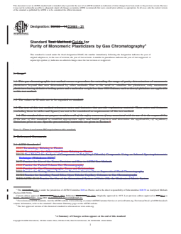 REDLINE ASTM D3465-21 - Standard Guide for Purity of Monomeric Plasticizers by Gas Chromatography