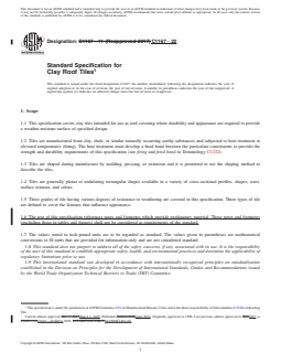1.1 This specification covers clay tiles intended for use as roof covering where durability and appearance are required to provide a weather-resistant surface of specified design.