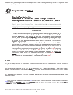 (Test Method)Standard Test Method for Permeation of Liquids and Gases Through Protective Clothing Materials Under Conditions of Continuous Contact