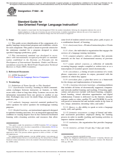 ASTM F1562-23: Standard Guide for Use-Oriented Foreign Language Instruction provides comprehensive criteria for the design, implementation, and evaluation of quality foreign language instructional programs centered on practical language use. Developed by ASTM International, this guide assists institutions, clients, and students in developing or choosing language training programs tailored to real-world needs. This standard sets forth essential components for effective language instruction, ensuring clarity in learning outcomes, robust evaluation methods, and a focus on skill acquisition for practical communication.