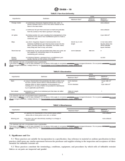 5.4 These practices acknowledge that, in the normal course of production, acceptable rolls of fabric will be produced containing imperfections; subsequently, pieces will be cut from the rolls and those pieces that contain imperfections restricted in Tables 1-5 will be culled at that time.