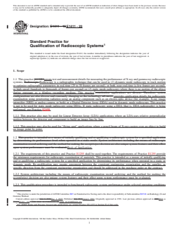 1.2.1 The requirements of this practice and Practice E1255 shall be used together. The requirements of Practice E1255 provide the minimum requirements for radioscopic examination of materials. This practice is intended as a means of initially qualifying and re-qualifying a radioscopic system for a specified application by determining its performance when operated in a static or dynamic mode. Re-qualification may require agreement between the cognizant engineering organization and the supplier, or specific direction from the cognizant engineering organi...