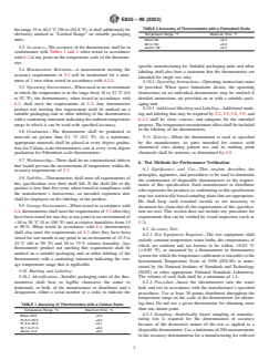 ASTM E825-98(2023) is an internationally recognized standard specification for phase change-type disposable fever thermometers used for the intermittent determination of human body temperature. Developed by ASTM International, this standard outlines comprehensive requirements and test methods to ensure the accuracy, reliability, and safety of single-use clinical thermometers. Its guidelines address crucial aspects such as temperature range and graduation, accuracy, measurement retention, labeling, operating and storage environments, toxicity, and overall workmanship. ASTM E825 serves as a benchmark for manufacturers, healthcare providers, and regulatory agencies to evaluate and select suitable disposable thermometry solutions, particularly for infection control and rapid patient assessment.